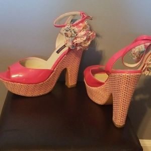Pink with multicolored flowers at strap