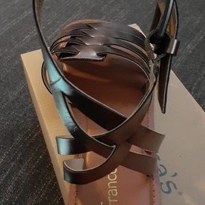 Bronze colored sandles that go around the ankle that look laced up. Very comfortable and in very good condition. The shoe says size 8, but it runs small so I'll say it a 7.5.