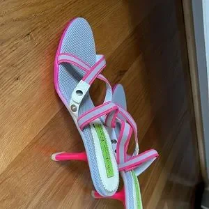 Fun link 3” heal sandals. Great for vacations, or just fun night out with the girls! Two adjustable buttons in strap. New without tag.