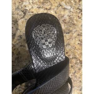 Sandles Vince Camuto black worn 1x - 7 1/2 heels 2 2/3” heel snake pattern