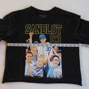 Sandlot Women's Black Long Sleeve Graphic Cropped Cutoff Tee With Vintage Design