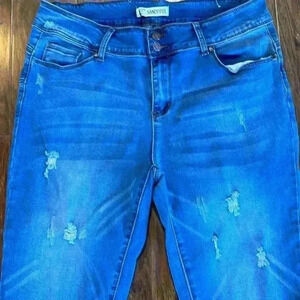 Stretch fit distressed jean/denim capris