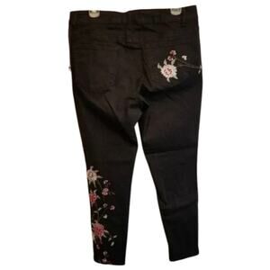 Sandpiper Women's Black Floral Embroidered Stretch Ankle Jeans Size 12 New