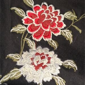 Keywords: embroidered jeans, floral jeans, black denim, applique jeans, womens jeans, casual jeans, fashion jeans, stylish jeans, designer jeans, floral embroidery, black jeans, unique jeans