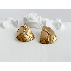 Sandra Baker Modernist Triangular Gold T Sterling Vintage SW Stud Earrings