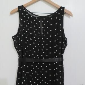 Sandra Darren 14 Black White Polka Dot Midi Dress Sleeveless