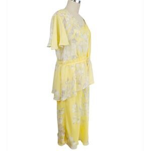 Sandra Darren 2 PC Set Floral Midi Dress + Asymmetrical Jacket Size 12 Yellow