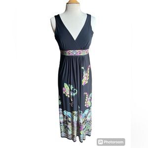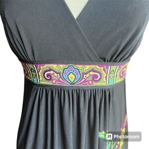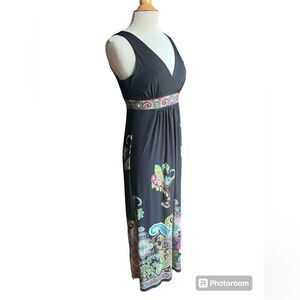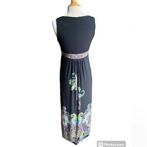 Sandra Darren 6 Black Colorful Paisley Surplice Neckline Sleeveless Maxi Dress