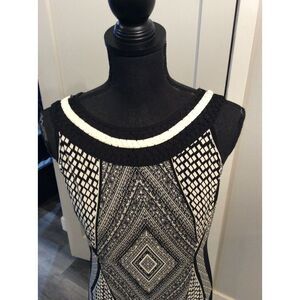 Sandra Darren 6P Maxi Black White print Geometric Dress lace Trim Neckline