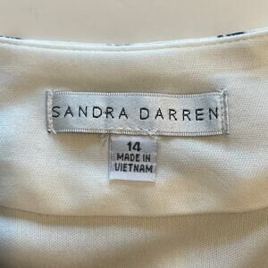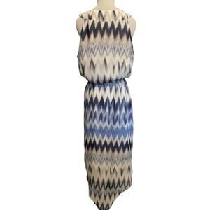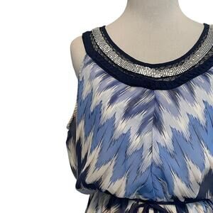 Sandra Darren Belted Midi Dress Womens Size 14 Blue Chevron Beaded Asymmetrical