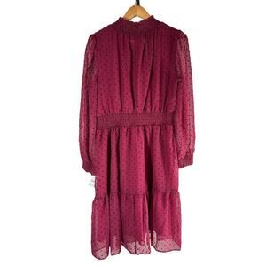 Sandra Darren Dot Keyhole Long Sleeve Midi Dress Wine Black Size Large