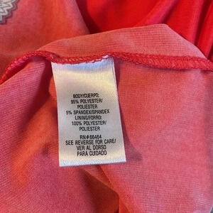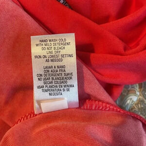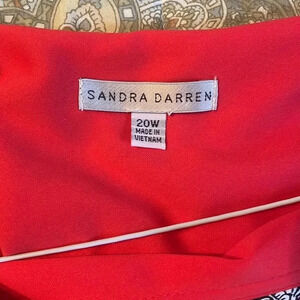 Sandra Darren coral dress with jacquard pattern. Wrinkle resistant fabric. Falls just below the knee on someone 5’7”. Barely worn, excellent condition. Size 20W.