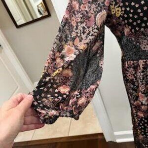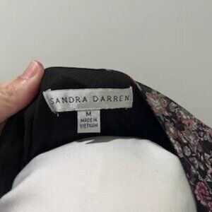 Sandra Darren Dress Midi Black Floral Long Sleeve Surplice Bust Sz M Prairie