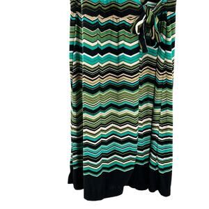 Sandra Darren Dress Womens 10 Green Chevron Side Tie V Neck Lined