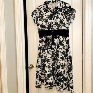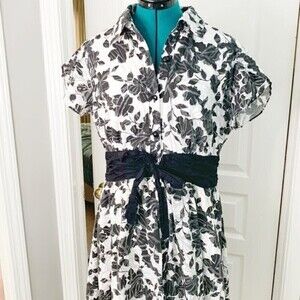 Sandra Darren Floral Tie Wide Waist Short Sleeve Casual Summer Party Dress