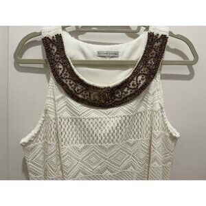 Sandra Darren Maxi Dress See Measurements Off White Beaded Neck Line Lace Lined