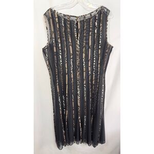 Sandra Darren dress, size 18 dress, sheer black dress, sleeveless dress, plus size evening wear, striped sheer dress, Sandra Darren size 18, women’s formal dress, plus size cocktail dress, elegant sheer dress, semi-formal plus size dress, party wear dress size 18, lightweight summer dress, Sandra Darren sleeveless dress, flowy black dress.