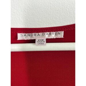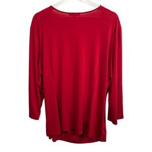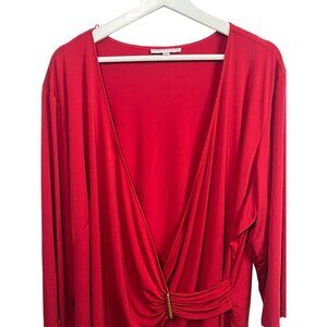 Sandra Darren Plus Size 24W Red Faux Wrap Blouse Womens 3/4 Sleeve Stretch Top