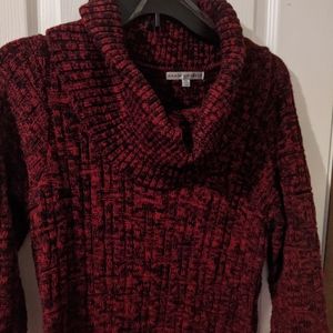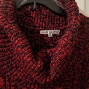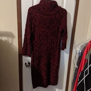 Sandra Darren Red and Black Cowl Neck Fitted Sweater Midi Dress Long Sleeve MP