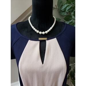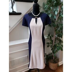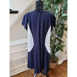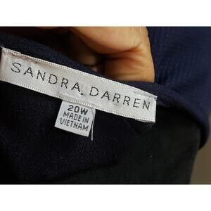 Sandra Darren Sheath Dress Womens Size 20W White Blue Short Sleeve Keyhole Neck