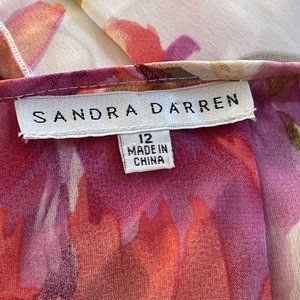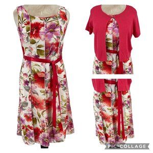 Sandra Darren Sheer Floral Panel Dress & Sweater set 12 Ivory Orange Flare Lined