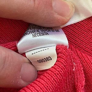 Is the little cover up red or dark pink? Your colors say orange and green, but it doesn't look orange. Thanks so much.