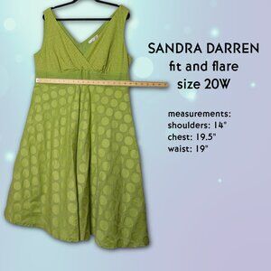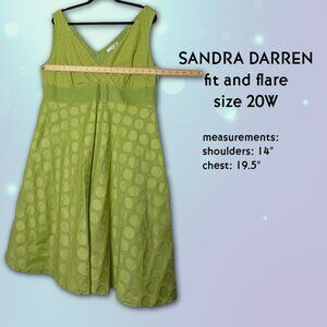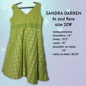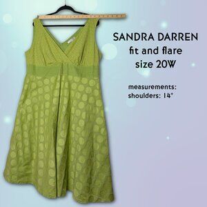 Sandra Darren Size 20W 100% Cotton Lime Green Polka Dot Fit and Flare Dress