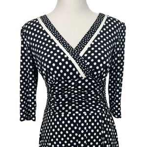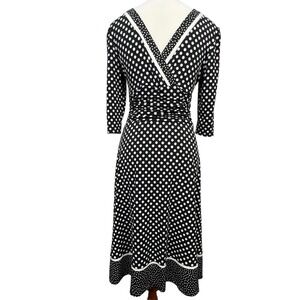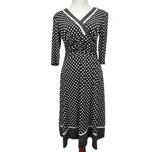 Sandra Darren 8 Polka Dot Black/White V Neck Swing Midi Dress 3/4 Sleeve