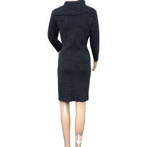 Sandra Darren Sweater Dress M Cable Knit Gray Cowl Neck Career Office Bodycon. Condition is pre-owned and EXCELLENT condition. Appears never worn. Chunky fisherman style cable Knit dress. Firm fitting. No rips, tears, holes or discolorations. PLEASE SEE MEASUREMENTS!!!