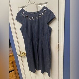 Sandra Darren Women’s Dress Size 14 Sleeveless Denim Blue Knee Length Embelish