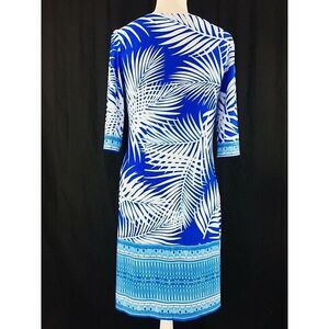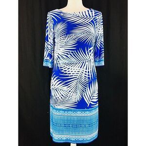 Sandra Darren Womens Sheath Dress Sz S Small Blue Floral 3/4 Sleeve Stretch Midi