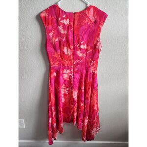 Sandra Darren Womens Sz 10 Pink Knee Length Floral Dress Handkerchief Hem