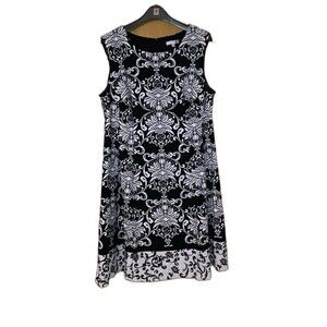 Sandra Darren black and white patterned sleeveless dress Size 14W EUC