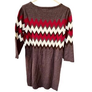 Sandra Darren size M Aztec print sweater dress. Charcoal grey with multi color Aztec print across chest.
