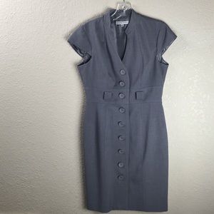 Sandra Darren Gray Button up Front Mid Dress with belt