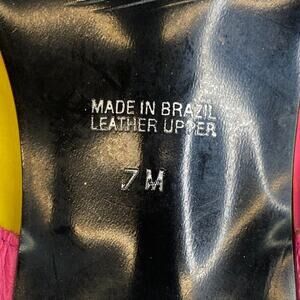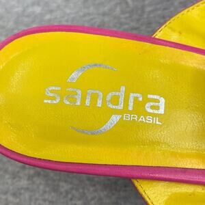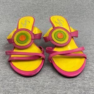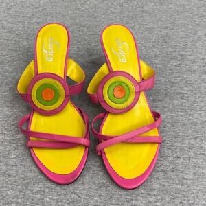 Sandra Heels Womens 7M Pink Yellow Leather Slide On Sandals Party Festive Formal