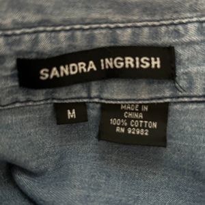 Sandra Ingrish Shirt Womens Medium Blue Denim Fitted Button Up Western Casual