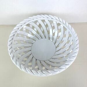 Open lattice ceramic bowl for your fruit or heated for your bread and pastries. Measure approx 9"