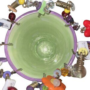 Sandra Magsamen Whimsical Ceramic Vase With Quirky Beaded Rim Mine Charms