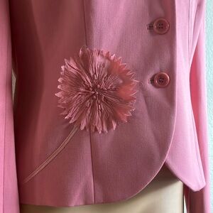 Sandra NWT Vibrant Bubblegum Pink Tailored Blazer with floral embellishment