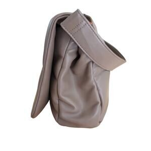 Sandra Roberts Square Quilted Faux Vegan Taupe Leather Shoulder Clutch Bag Purse