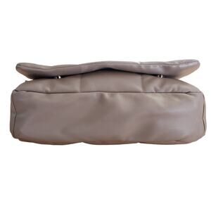 Sandra Roberts Square Quilted Faux Vegan Taupe Leather Shoulder Clutch Bag Purse