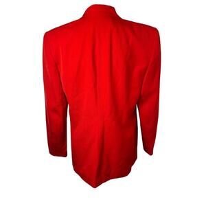 Sandra Roth Ciao Sport, Women's Size 10, Red Pure Wool, 2Enamel Gold tone Button Front, Contrast Yellow Lining, Pocketed Mid Length Vintage Old Money Festive Blazer, Made in Hong Kong