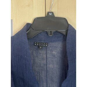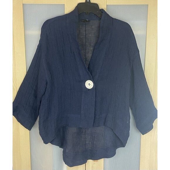 Sandra Soulos Linen Blue Women's Tunic Top Sz 12 Gauzy Lagen Art Coastal Casual