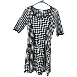 Sandra Darren size Medium houndstooth knit dress fit n flare