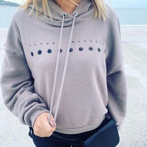 Sandra Mansour x H&M. Relaxed-fit sweatshirt hoodie in a soft cotton blend with a sunflower and printed text design at front. Jersey-lined drawstring hood, heavily dropped shoulders, and yoke at back. Long sleeves and ribbing at cuffs and hem.