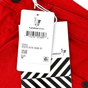 Sandrine Rose By Free People Women's Red Blood Skinny Fit Straight Leg Tapered Denim Jeans Size 28 and 29