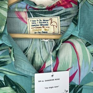 Sandrine Rose Free People Women’s Green Pink Leafy Oversized Button up size m