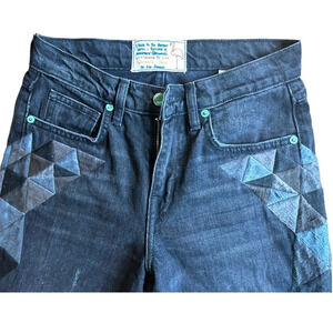 Unique vintage jeans from Sandrine Rose, embroidered leg with a fray hem leg. See photos for measurements.