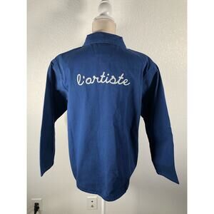 When something is yours its yours, the "Not Yours" shirt jacket leaves no question. It is a button down shirt jacket that has an intended oversized fit and utility feel. "Not Yours" is embroidered on the front breast pocket and "l' artiste" on the back. This shirt jacket is perfect for transitioning into the seasons and layering. It also has two additional pockets on the front. New with tags, no rips stains, or damage.